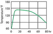 It then maintains a steady, reliable warmth between 120–130°F (49–54°C) for nearly two full days before gradually cooling through the final 24 hours. By the 72-hour mark, the pack typically settles near 85°F, providing a gentle finish that keeps shipments stable through extended transit.